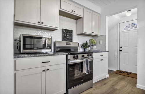 Step inside and find an all-new finish and furnishings. The comfortable living room area includes a large Smart TV. Step into the kitchen where you'll discover large marble countertops, new cabinets and new stainless-steel appliances so you can prepare all your meals. There's a spacious dining area too. Head upstairs to find three bedrooms (one King, one full, and one twin), and a full bathroom. The basement is half finished and includes free laundry facilities and a half bath.