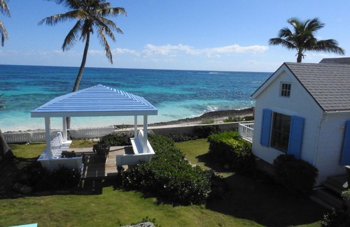 Bright & breezy cottage in Hope Town settlement directly adjacent to the Atlantic ocean with living/dining room with love seat and chairs (no pull-out bed), bedroom with queen-size bed, full bath and well-equipped kitchen. Gorgeous views of the Atlantic with famous Hope Town lighthouse and the Sea of Abaco steps away. Open your door to walk on the Atlantic beach. Mile long pink sand beaches to the left and right. AC, hi-speed Internet, Cable TV, microwave, toaster, blender, coffee maker, tea kettle, etc. Short walk to Post Office Ferry dock, groceries (local stores close on Sundays), coffee house, shops, restaurants, dive/fishing charters. Ideal for a couple. Regular access from Marsh Harbour via Alburys Ferry.
