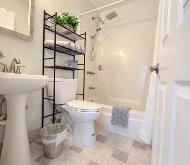 Food & DrinkBottle of water, Tea/Coffee makerBathroomBody soap, Shared bathroom, Hairdryer, Bathtub, Toilet, Free toiletries, Toilet paper, Shampoo, Bathtub or shower, Conditioner, Private bathroom, Shower, TowelsMedia & TechnologyTV, Streaming service (like Netflix), Flat-screen TVGeneralFan, Ironing facilities, Trash cans, Private entrance, Iron, Carbon monoxide detector, Heating, Carpeted, Key card access, Fire extinguisher, Smoke AlarmKitchenMicrowave, Coffee machine, Dryer, Toaster, Stovetop, Wine glasses, Refrigerator, Dining table, Kitchen, Washing machine, Oven, KitchenwareLiving AreaSofa, Sitting area, Dining areaViewViewBedroomAlarm clock, LinensOutdoorsOutdoor furnitureRoom AmenitiesClothes rack, Socket near the bed, Sofa bedEntertainment & Family ServicesBoard games/puzzlesCleanliness & disinfectionHand sanitizer |