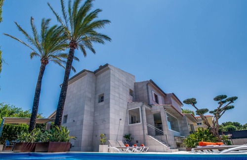 This elegant holiday home in the peaceful Es Barcares area of Alcudia is just 1 km from the village and the sea, combining high-quality design with a superb location. Inside, spacious living and dining areas are bathed in natural light from large windows, offering a serene atmosphere for relaxing, reading, or enjoying TV on comfy sofas. The dining table seats eight, perfect for shared meals, while the fully equipped modern kitchen includes appliances like a dishwasher and oven for your convenience. One ground-floor double bedroom with en-suite bathroom and a separate toilet complete the layout, with all rooms air-conditioned for your comfort. Upstairs, additional stylish bedrooms provide restful accommodations, while outside, a lush garden with palm trees and plants surrounds a large saltwater pool. Eight sun loungers invite you to soak up the sun, and the outdoor dining area with table for eight and barbecue is perfect for alfresco meals. The home offers a private oasis for ultimate relaxation. The location is unbeatable: near the tranquil Es Barcares boat port, with scenic rocky bathing spots and coastal walks nearby. Alcudia’s historic center, just 1 km away, features medieval walls, vibrant markets, and charming shops and restaurants. This property is ideal for a relaxing holiday, outdoor adventures, or island exploration. Groups of young people must pay a refundable €800 deposit on arrival. Special winter rates apply in January, February, and March at €1500 per month. Electricity is charged at €0.25/kWh based on consumption.