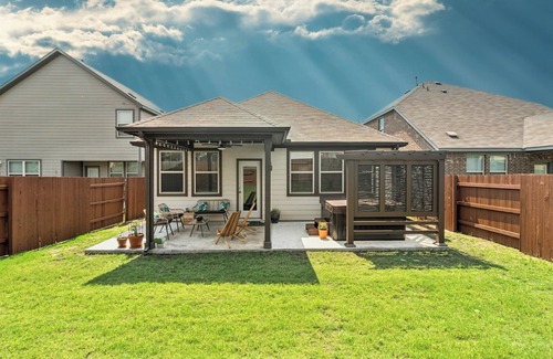 In this beautiful house in Buda, you can easily reach lively South Congress Avenue by car within 16 minutes and peaceful Lady Bird Lake in about 17 minutes. Soak in the hot tub, connect to the high-speed WiFi, and enjoy the convenience of the in-unit washer and dryer. Cook up a storm in the fully stocked kitchen, complete with a stove, oven, refrigerator, grill, and all the appliances and utensils you need. Unwind in the evenings with a movie on the smart TV. With 2 bathrooms, towels, basic toiletries, and an iron and board, you'll have all the essentials covered. Stay comfortable year-round with the air conditioning and heating. Secure parking is available on-site, making it easy to explore the nearby Circuit of the Americas, just an 18-minute drive away. Immerse yourself in the local charm and create unforgettable memories during your stay in our inviting Buda vacation home.