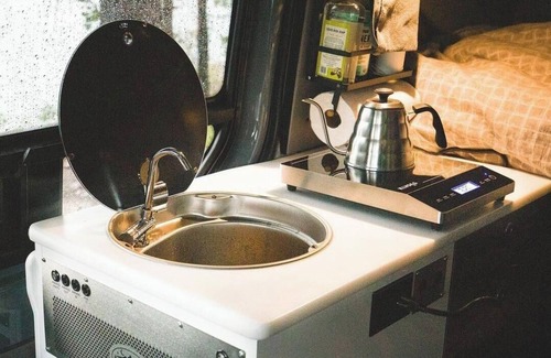Your adventure begins at this lovely, off-grid ready recreational vehicle. The space features a queen bed and a lounge area that doubles as an additional twin bed. The RV maintains 16.8 kWh of off-grid power and features additional amenities that include AC, Wi-Fi, heat, running water, induction cook top, microwave, toilet, shower, and awning. This booking is for RV lodging only and does not include mileage, which will be charged separately at the GSA rate of $0.70 per mile.