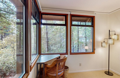 Escape to this sweet and classy hideaway nestled in the serene surroundings of Sea Ranch, CA. This charming house features a main one-bedroom layout with a second bedroom and bath connected by a deck, making it ideal for one or two couples or a remote work writer's retreat. The cozy great room boasts window seats and a wood stove, perfect for relaxing after a day of exploring the miles of hiking trails through the redwoods and along the coastal bluffs.