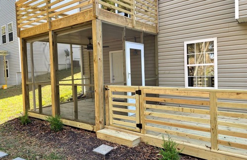 Relax with the whole family at this peaceful place to stay. Newly remodeled kitchen, with all new appliances, 5 bedrooms in total. 3 bedrooms, 2 1/2 bathrooms upstairs with deck. Enjoy the newly finished basement with private entrance, which features two bedrooms, with Queen beds, 2 futon sofas, bathroom, kitchenette, dining area and screened in porch and deck.