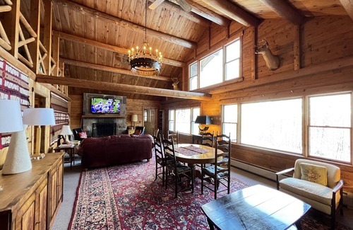Tons of space and a cozy feel. The main floor has all the original log cabin beams exposed with a more modern den that includes a ski gear dryer so you are not riding with wet gear the next day!