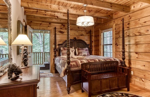 Snuggled into the Peaceful Side of the Smokies, "Bear Necessities" offers all you need for the PERFECT pampering during your next mountain escape! Feel the simplicity of our craftsman built, rustic log cabin yet, be pampered with the many modern, luxurious amenities in this gorgeous 2-bedroom plus loft with inviting hot tub, secluded deck, wood burning fireplace, and very well stocked amenities! Cabin is decorated for the seasons! No compromise with our SUPERFAST WIFI and streaming channels. Curl up with a soft blanket and grab a book off our shelf or engage family with the many board games provided. Rest in the serenity of a comfy bed and room darkening blinds. Hike, bike, grab a coffee, dine, and explore the many festivals and holiday events within minutes of the cabin! Perfect location to Cades Cove, Foothills Parkway, Pigeon Forge, Gatlinburg & The Dragon in Laurel Valley's stunning gated, golf- community. May-Sept, enjoy our gorgeous community Saltwater POOL with majestic mountain vistas!