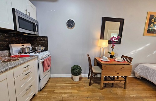 Cozy private studio in walking distance of Landsdowne subway station in downtown Toronto. Newer and quiet neighborhood in Toronto. Full kitchen and large appliances.