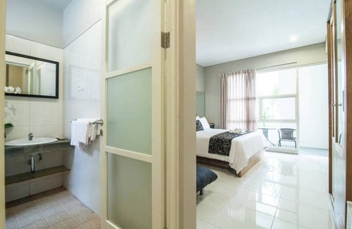 This studio room is located in Imam bonjol street which is in between several famous regions of Bali: Denpasar, Legian and Kuta. It has large bedroom (28 meter²), in-room private kitchen & bathroom, and balcony with a tropical garden view. However, The best place to explore Kuta, Legian, Denpasar, and seminyak within under 5 kilometer.