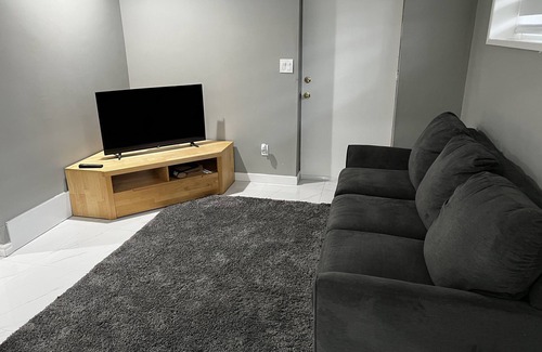 Basement suite with its own separate entrance. Living space has one queen bed and a pull-out couch. Has a small space with a, microwave, bar fridge,Keurig coffee machine kettle & dishes (no kitchen or sink ). 3pc Bathroom has standup shower. TV is available with cable. Hosts do you live upstairs