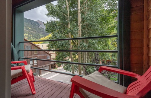 Fall Line 207 is an affordable two-bedroom/one-bath condo located one block off Main St and just 2 1/2 blocks from the Gondola Plaza. Priced like a Telluride hotel room, but with the advantages of a full kitchen and two bedrooms, Fall Line is convenient to Main Street and the Ski Area The Library right next door is a big plus. It has free programs including, but not limited to yoga, movies, books and use of their printers for a minimal charge. The condo has a kitchen, a washer/dryer, a deck with views of the ski area and Bear Creek and two very comfortable Adirondack chairs; It contains two bedrooms (each with a queen bed and brand new Led flat screen TV) and one full bath. There is a dining area and a comfortable living room with a TV and a DVD player with an outdoor balcony off the living area. There is a common hot tub at the Fall Line and an elevator to access the garage of the building as well as a covered parking garage. This condo is perfect for your affordable ski or Festival trip to Telluride!
