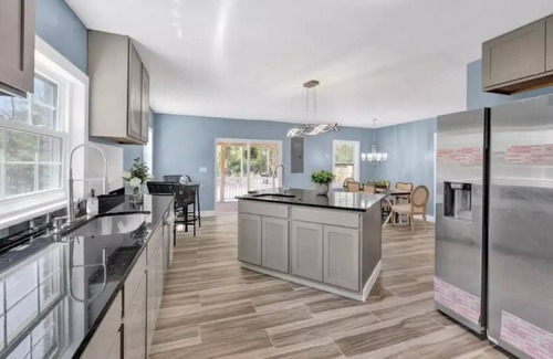Guests will enjoy easy access to everything from this centrally located place. Fully furnished, w/ wifi. Cameras for added security. Cozy & quiet, newly renovated home w/ new everything. Washer and Dryer onsite. An air hockey table for fun! A reading nook for guests who loves to read. An exercise room for those fitness conscious. Beautiful large kitchen w/ a large island, a breakfast nook, & dining room. A patio & fire pit area w/ a BBQ grill.