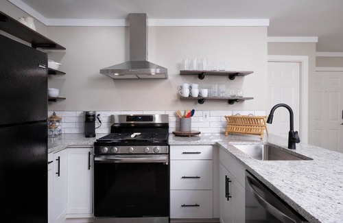 The bathrooms have clean towels, basic toiletries- shampoo, conditioner & body wash. In the bedroom closet, you will find iron & ironing board.
