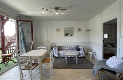 The Craven Cottage apartment is located in the heart of Salies-de-Béarn, close to shops, restaurants, casino and thermal establishment, everything is within walking distance. Recently renovated by the owners Annick and Peter, it is located on the first floor of their typical Bearn style house (wooden gallery). This cottage offers ALL INCLUSIVE SERVICES: sheets and towels provided, wifi, heating and air conditioning included. Free bicycle loan. Pleasant for holidays as for your thermal cures (CURE stays 3 weeks - 20% off summer). Access by an outside staircase, independent entrance by the traditional Béarnaise gallery. Public car park nearby. Your rental has: - Fully equipped kitchen (3-burner gas hob, 1 electric electric oven, microwave, fridge-freezer, dishwasher) - Living room opening onto a covered balcony facing the listed church (sofa - TV) and outdoor furniture - 2 bedrooms (1 double bed, 2 single beds), bathroom with shower, washbasin, wc, washer-dryer. Electric heating / reversible air conditioning. Access to the garden shared with the owners. Presence of another location.