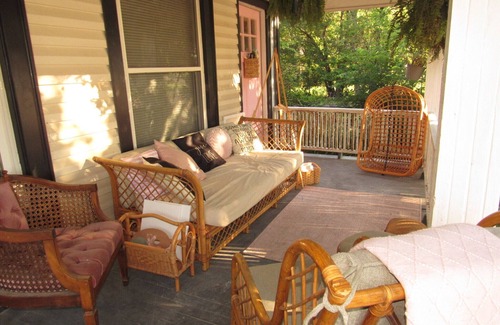 Really cool creative place with big front porch, guitars, piano. Priivate rooms available.