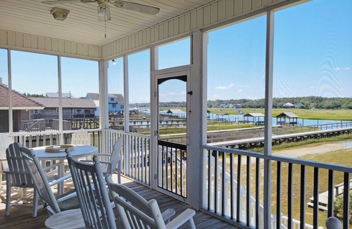 Creek Front Beach House, Easy Walk to Beach, 3 Screened Porches, Deep Water Dock | House in Pawleys Island