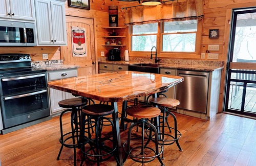 At Water’s Edge, life slows down in the best way. Nestled directly on Deep Creek, you’ll wake up to the peaceful sound of water. Spend your days tubing, fishing, or exploring the Great Smoky Mountains National Park, then come home to a relaxing soak in the hot tub or a friendly game of pool. With plenty of space for families and friends, cozy gathering areas, and a location just minutes from downtown Bryson City, this cabin makes the perfect balance of mountain adventure and laid-back comfort.