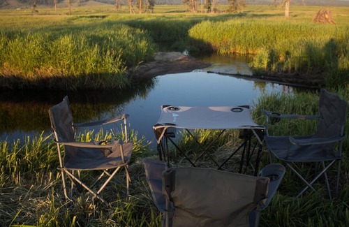 This camp is an outdoor paradise on private property. It is already set up with a 2-bedroom cabin tent, a separate bathroom/shower tent, large shade tent and picnic table. The cooking area has a propane griddle and grill with burner. There is an outdoor kitchen sink and tables. Pots, pans, dishes, coffee pot, air mattresses, ice chest, lighting and camp chairs are provided. Guests need to bring their own bedding/sleeping bags and food. Only a mile from town but feels like you are away from it all. I put 6 people max but there only 2 queen beds air mattress’s in the tent so you might want to bring additional air mattress’s if you need more beds. There is no electricity or plumbing to this tent. It is off the grid living. Portable toilets and solar outdoor shower. Located 10 miles south of McCall and 8 miles from Tamarack Resort. Please contact host for additional information and to confirm availability. Host is nearby as needed to help make sure your vacation is awesome, Steve 208-630-3881
