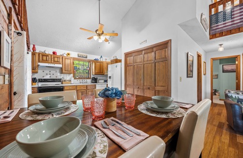 Enjoy time with family and friends at the cabin, sitting beside a flowing creek and surrounded by trees and wildlife. NO steep, curvy mountains roads to climb. Lots of parking and yard to play in. Fully stocked kitchen, comfy beds, lots of fun and games to enjoy such as a fire pit, horse shoes, corn hole, giant jenga, board games, and books for the kids. Bring your bicycles too. Only 30 minutes east of Gatlinburg and a few more miles to all the fun of Pigeon Forge. The Foothills Parkway is behind the cabin and has 4 amazing overlooks. Lots of area hiking trailheads to explore. A little piece of heaven in the woods but only 10 minutes from the town of Newport for local shopping, restaurants and Interstate 40.
