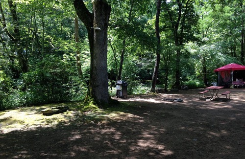 and outdoor cooking area with picnic tables. White water tubing in the summer