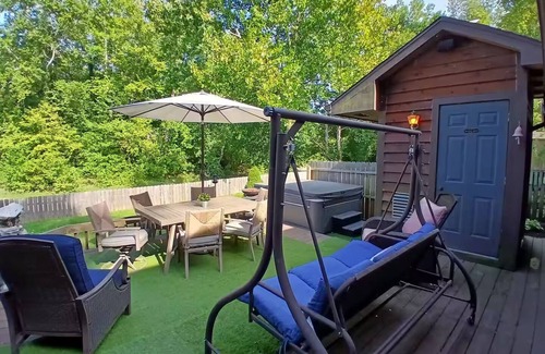The cottage has its own private entrance. Two bedrooms with full bath. Bedrooms are king and one is queen. There is also two rolling beds and a queen sofa hide-a-bed available. You'll have your own private kitchen and dining room. The dining room features a beautiful pellet stove. You also have your own private living room and den with another pellet stove and a gaming area featuring a classic Wii game system! NO cable TV is provided. This is a rural area, we want you to come and relax. You also have access to a private deck with a hot tub overlooking the best view on earth! A barbecue grill is also provided on the deck.
