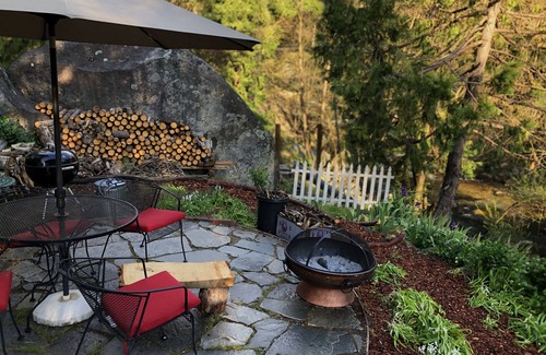 This charming miner's cabin is perched right along Deer Creek canyon, right downtown in the Historical District of Nevada City. With designated parking for the property, guests are just step away from everything downtown has to offer, but with a sense of peace & quiet nestled in the picturesque wooded canyon along Deer Creek.