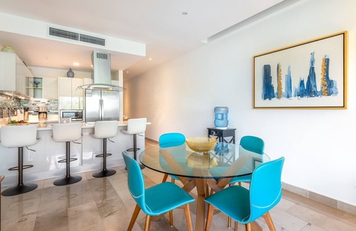 Escape to 'Paradis Found', an enchanting romantic retreat nestled in the vibrant heart of Playa del Carmen, Mexico, perfect for couples seeking a blend of romance and relaxation. Cruz Con Mar 405 is a contemporary 2-bedroom, 3-bathroom condo, completed in June 2018, is a sanctuary of comfort with awe-inspiring views of the Caribbean Sea and Cozumel Island.
