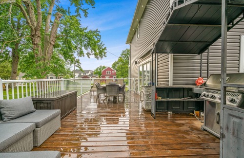 Get ready for the ultimate family vacation! Crystal Clear Cottage is the perfect place to relax and make memories. Enjoy the natural light in the inviting open-concept living space, cook up a storm in the fully-equipped kitchen, and gather around the huge dining table. Step outside to dine al fresco, soak in the hot tub, or roast marshmallows by the fire pit. Sleeps 8 with three queen bedrooms and a finished basement with double bed, lounge area, and foosball table. Only a 3-minute drive to Bay Beach and a 3-minute walk to Tim Horton's!