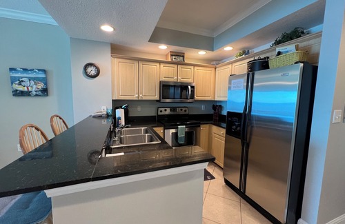 Our condo has two large bedrooms king beds in each, two full bathrooms, a living room , a dining area, and a fully equipped kitchen with stainless steel appliances, and granite counter tops. The master bedroom has a brand new bedroom set and a brand new beauty rest king size bed, a 32' flat screen LED/ LCD TV. This room also has a sliding glass door that opens to the balcony, which provides a beautiful view of the gulf. The guest room has also a new King size bed, and a 32 inch flat screen TV. The living area has a 39' flat screen LED TV and a sliding glass door that opens to a large balcony over looking the gulf which is furnished for your comfort and enjoyment. Our condo is equipped with a concierge phone directory for local restaurants and fun activity referrals. We accept major credit cards.