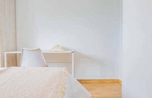 The bedroom has a double bed, an exterior window that provides natural light, space to organize your luggage, and a private bathroom with a shower tray 🚿. Additionally, it features a smart TV, desk, and WiFi connection so you can telework or relax watching your favorite series from the comfort of your space 💻📺. Please note that visits from family or friends require prior authorization.