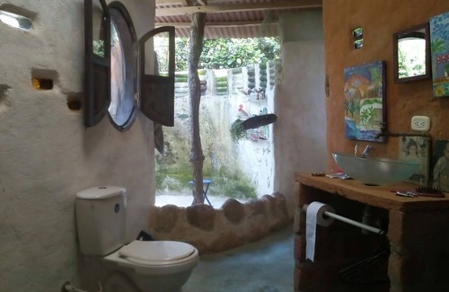 la cueva de barro es un lugar ideal para descansar y casa esta ubicada casi saliendo del pueblo en las faldas de la montaña ( la sierra nevada de santa marta) . tenemos a 15 minutos el rio y a 15 minutos el mar y el centro del pueblo esta a tan solo 5 minutos caminando. la tranquilidad que se respira es unica , pueden llegar en todo momento todo tipo de aves y en la mañana se escuchan los monos aulladores. la casa ofrece un buen espacio para moverce y practicar cualquier actividad. el terreno donde esta la casa tiene 1000 m2.