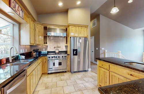 Your custom-built, two-story retreat features lovely bathrooms, granite details, and custom cabinetry. The chef in your group will appreciate the gourmet kitchen, decked out with stainless steel appliances and a professional Viking stove.