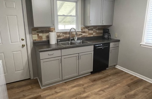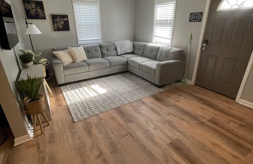 This 2 bedroom 1 bath home offers a relaxing space to stay away from home. Recent updates allow you to sit back on a comfortable brand new couch in the large living room and enjoy the indoor fireplace giving a charming, cozy feel. The living room and bedrooms have smart TVs with access to Netflix. Brand new Queen and King beds will offer you a great nights sleep, and there is a fully equipped kitchen ready for your cooking. Washer and dryer in the house as well! Also in a great location to take the night off and order delivery!