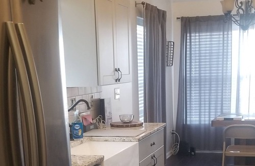 Updated home in Lorain, Ohio. Kitchen features stainless steel appliances and farmhouse sink. TV and DVDs for entertainment plus access to wifi. Two bedrooms total. Master bedroom has king-sized bed and a Queen bed in the loft. Spare bedroom has a Queen. Attached two car garage. Close to Lakeview park and within walking distance to Lake Erie. About a 30 minute drive to Cedar Point westbound, and Cleveland Eastbound. Also, minutes away from Lorain boat launch if you come for Lake Erie's great fishing! Driveway is long enough to park a boat if necessary.