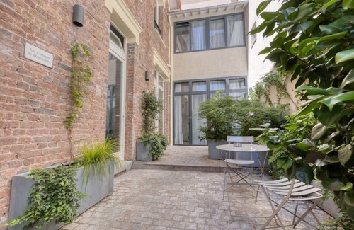 Upstairs of a charming renovated house with tree-lined courtyard, top-of-the-range furnished apartment bright and refurbished by a renowned architect. With a surface area of 26 m² it's perfect for a solo or duo stay. It includes a cathedral living room with open fitted kitchen (hob, microwave), a separate toilet, a beautiful sleeping area and a shower room.