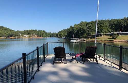 A cozy and special property that sits very close to Lake Lanier on quiet Taylor Creek. Enjoy expansive lake views from every room in this house including the dining screened porch and deck. The house is situated perfectly to capture spectacular sunsets reflecting off the water. Sleeping options include a Master with King, a 2nd bedroom with a Queen, and a large bunk room with 2 double beds and 2 twins that works for a couple but is perfect for kids. For activities you can enjoy swimming, boating, fishing, reading on the dock, kayaking in our 3 kayaks (1 double and 2 single), grilling/smoking on a BGE or just enjoying the ever-changing lake vista from the dock, porch, deck or any room in the house. Bring your boat and tie up at our dock. This house was completely gutted and renovated in 2010 by the current owners. It includes an open-concept kitchen, family room and dining booth. It includes a wood-burning fireplace for cozy winter evenings and a fire pit by the lake for s'mores. It includes a large 32 by 32 covered dock with a generous seating area and chairs. The upper level of the dock is perfect for fireworks. Very secluded and quiet location down a short drive from the end of a street. Close to 2 grocery stores and outlet mall at Dawsonville. Only about 30 minutes from Alpharetta. Satellite TV. Stereo in house and on dock. Grill/smoker for your use. A truly special place that is new to the rental market as of Nov 2018.