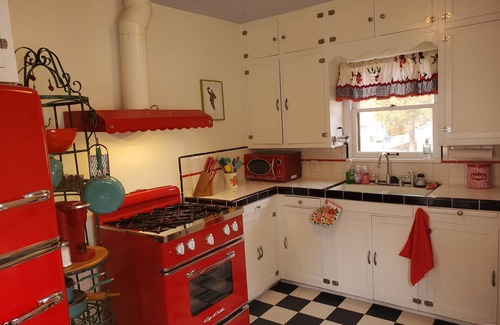 Take an afternoon stroll through the Park neighborhood and soak in all of the historic homes and landscapes from back in time when life seemed to be a little easier. It is easy to see how much Prescott has changed as well as so much that has stayed the same! Relax in the hot tub, kick back in the hammocks, and if you are traveling with youngsters they will love playing around in the lush green back yard, sledding down the hilly streets or even better down the driveway of our other home, Magnolia Mountain Cottage, only a couple minute’s drive away and playing with the chickens also at Magnolia Mountain Cottage. If you like fresh eggs be sure to ask and if our feathered ladies are layin’ eggs we will bring you some for your country breakfast in the woods. Watch for the wild deer who prance their family in a line through our back yard almost daily. Enjoy coffee, tea & hot chocolate from our Keurig or drip, utilize our full kitchen for just about any size meal. We are close to just about everything! Enjoy the neighborhood coffee shops, cafes, boutique and antique shopping right down the street. And if you don't feel like driving Uber/Lyft can get you anywhere you want to go. Give us a call and if we are not too busy we can give up to 5 people a lift. That is if your not too embarrassed to be seen in our gas powered golf cart!