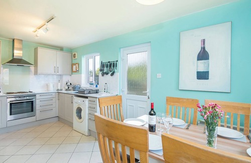 Cwtch Cottage is a super end of terrace modern holiday home set on a quiet residential cul-de-sac in the heart of the seaside village of Broad Haven, just 100 yards from the stunning sandy beach and sea. Perfect for a couple or family, it is comfortably furnished with practical laminate floors throughout, step into the modern fitted kitchen/diner, you can appreciate how close you are to the sea with glimpses from the kitchen window which overlooks the rear garden. Relax in the welcoming sitting room on the comfortable sofas, stairs lead up to the 3 bedrooms and bathroom on the first floor, welcoming retreats, while the double bedroom offers views to the sea and beach between the buildings. French door leads out from the kitchen/diner opening out to the sheltered, enclosed rear garden with lawn and paved terrace, enjoy summer evenings and dine alfresco at the picnic bench while listening to the sounds of the waves breaking on the beach and catch glimpses of the sea. Spend your days on this stunning stretch of golden sand, just a short level stroll away via a footpath, perfect for children to play and build sandcastles while your four legged friend will love a good run or try your hand at one of a choice of water sports on offer, there is even a hire shop for all the equipment, surfing, kite surfing, kayaking, sailing and paddle boarding are all popular. Broad Haven is well-equipped with a café, popular local pub and well-stocked shop all on your doorstep, so just forget the car from the moment you arrive. Keen walkers can take to the Pembrokeshire Coastal Path to really appreciate the coastline’s stunning beauty, at low tide head along the beach to the neighbouring picturesque sandy inlet of Little Haven or over the headland when the tide is in. Children will love exploring the rock pools and the sheltered cove, popular with sailors, while there is an excellent choice of beach side pubs, restaurants, cafes and art galleries to try. There are a choice of beautiful beaches to explore nearby including Druidston and Nolton Haven, head to the Dale Peninsula, popular with sailors and don’t forget to take a boat trip from Martins Haven to visit Skomer Island home to the magical and comical Puffins, a truly special experience. While in the other direction is the long beach of Newgale, simply stunning and renowned destination for keen surfers.Cwtch Cottage is a welcoming holiday home whatever the time of year.