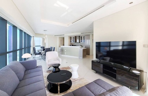 Sophisticated and spacious three bedroom apartment located in the trendy district of Business Bay and neighbouring Downtown Dubai. There is plenty of space for the entire family and Vacationer guests will love the high-end hotel grade facilities like the fully equipped gym and swimming pool. There are also a few cafes and restaurants to enjoy on the retail level of the building as well as an ATM machine. This peaceful space is the perfect retreat for a family vacation in the buzzing city.