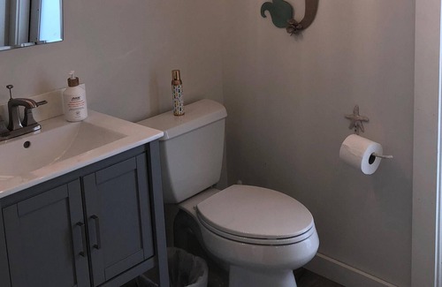 Newly renovated bright and sunny home close to the bay. Located on Driftwood Walk, east of the marina. Short walk to the ferry & harbor store. Five minute walk to the ocean. New kitchen, AC throughout, outdoor shower, washer/dryer, grill, wrap around deck. Great views of the bay. Beautiful sunsets.