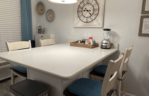 Oceanfront property at Ocean Jewels Club, 935 S. Atlantic Ave. and close to everything Daytona Beach is famous for! Just steps from the beautiful beach *(DUE TO PAST HURRICANE DAMAGE, 1 OF 2 POOLS ARE TEMPORARILY CLOSED). HEATED POOL IS OPEN. There is a grocery store (Winn-Dixie) 1.4 miles away and a 7-11 right across the street from the condo. Visit the Main Street Pier 1 mile away where you will enjoy rides, shopping and many restaurants on the boardwalk. Less than 5 miles is the Daytona Speedway, 1 1/2 miles to Daytona Lagoon (water park), 1 1/2 miles from the Daytona Beach Bandshell where they have many concerts of all genres. Our complex has 2 full size pools, but only the heated pool is open right now because of hurricane damage. It is located on the north side of complex.This condo can accommodate 6 but works better with 4 or if some are children.