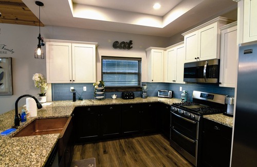 Situated in the quiet Little Indian Resort community along Table Rock Lake, Deer Ridge Lodge provides the quintessential getaway to experience a host of state parks in the area, Branson, Silver Dollar City and more! Start your morning off right by preparing a delicious breakfast for the group in either of the fully equipped kitchens (main level and downstairs) complete with stainless-steel appliances and granite countertops. The expansive main kitchen boasts a 62-inch refrigerator freezer with a full-size freezer and a gas double oven and stovetop. Make a fresh cup of coffee and indulge in your meal al fresco on the extended deck with spectacular views of Table Rock Lake. After a morning spent at the refreshing community pool, you'll love returning to the enormous interior of your new home-away-from-home, offering soaring wood-paneled ceilings, sleek luxury vinyl flooring and large wall-to-wall windows which illuminate the open-concept living area. While the adults watch a movie on the flat-screen smart TV atop an immaculate gas fireplace, the kids can disappear to the game room downstairs outfitted with a pool table, foosball, and flat-screen TV. Step outside for a night cap and warm up by the wood-burning fire pit. As bedtime approaches, start your nightly routine in any one of the luxurious bedrooms where plush sleeping arrangements and a blissful night's sleep await! Kids will love the camp-lodge style beds in the bunk room with a total of 12 twin beds. Our guests love our mattresses!