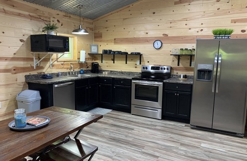 This cabin shares 20 acres in the woods with a few of our others. Each are spaced out to keep it private and relaxing! It was built in late 2019 and finished in early 2020. It is completely self-sufficient, fully-furnished with all appliances.