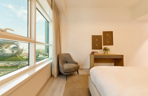 Stay in an elegant apartment with a strategic address and incredible views of the famous Museum of the Future, placing you ten minutes or less from Dubai’s top landmarks, local favorites as well as their best-kept secrets. Walk over to the DIFC district through the metro footbridge, explore art galleries and relish lavish dinners in award-winning restaurants. Spend a day at Dubai Mall, mesmerized by the dancing fountains; pick up a unique piece by one of the region’s rising designers from Dubai Design District, or head out to La Mer beach to soak up the sun and sea. Just be sure to catch the sunset over Dubai’s glistening skyline from the best view in town, The Burj Khalifa, before you head home.