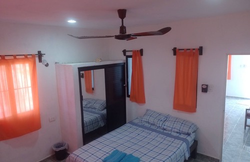 Departamento Caracoles 2 planta alta ofrece de entrada una estancia para 3 personas hasta 8 personas (ver condiciones y costo extras más abajo) con servicios básicos como para pasar desde un día hasta meses, con descuento desde una semana y mensual, su estratégica ubicación a pocos metros de su costa y malecón, centro históric así como agencias de viajes ecoturísticos, pesca deportiva, expendios de cervezas y licores, restauranteste etc te da la oportunidad de difrutar del puerto d Dzilam Bravo, considere que solo hay una cama matrimonial y una cama individual, si se van a alojar más de 4 pueden traer sus hamacas, hay suficientes hamaqueros, se recomiendan 3 hamacas para estar cómodos