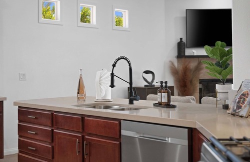 Welcome to our desert oasis! Located only 15 minutes away from downtown Palm Springs, this newly renovated home offers a brand new heated salt water pool and spa, perfect for soaking up the sun and enjoying the gorgeous mountain views. The spacious living areas are perfect for spending quality time with loved ones.