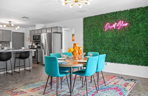 New: Desert Glow now features a newly renovated game room with a 75" Smart TV, oversized (and super comfy) couch, washer, dryer, and a 2-player Ms. Pacman Arcade Video Game.