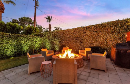 Beautiful Mid-Century Modern Atomic Ranch ready for a comfortable, relaxing getaway. This classic desert home has a beautiful private 5,000 SF backyard with a saltwater pool, 8 person spa, 2 fire pits, and fantastic mountain views, on a quiet street and only 5 mins from everything in Palm Springs.