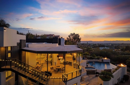 Wander Camelback Canyon is a stunning mountainside estate offering panoramic views and unparalleled luxury. This exceptional property features an infinity pool, spa, and ample outdoor seating, with two pickleball courts, a basketball court, and multiple putting greens for active enjoyment. Inside, the open-concept design includes high-end furnishings, a game room, and en-suite bathrooms for each bedroom. With premium amenities and luxury services, Wander Camelback Canyon provides the ultimate desert retreat for relaxation and recreation.