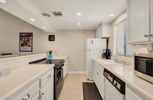 The condo was updated on 6/1/2023 Updates include re textured and repainted ceilings . New paint and new base boards in the two bedrooms and master bath. New tile floors in both bedrooms and hall. And new lighting in master bedroom and bathroom. One of the quietest locations at the Palm Desert Resorter.