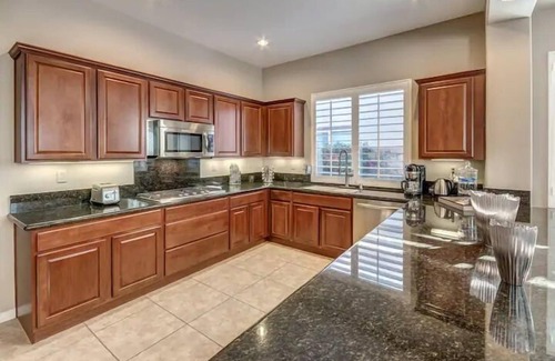 You ll love spending time in the cozy living room where you can watch your favorite movies on the large flat screen TV with Netflix streaming and a sound system. You ll never have to worry about missing your favorite shows while on vacation! The house has a gourmet kitchen fully equipped with stainless steel appliances and granite counter tops. Kitchen is stocked with coffee maker, electric kettle, blender, rice cooker, cookware, bake ware, and dinning service for 2- 8 persons.